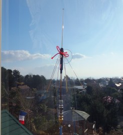ホテルに宿泊した時、窓に破れ傘アンテナを吸盤で取り付けて運用。