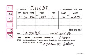 パイルアップになっていたのでダメかもしれないと思いつつ呼んでみたら、何と1回で交信できてしまいました。