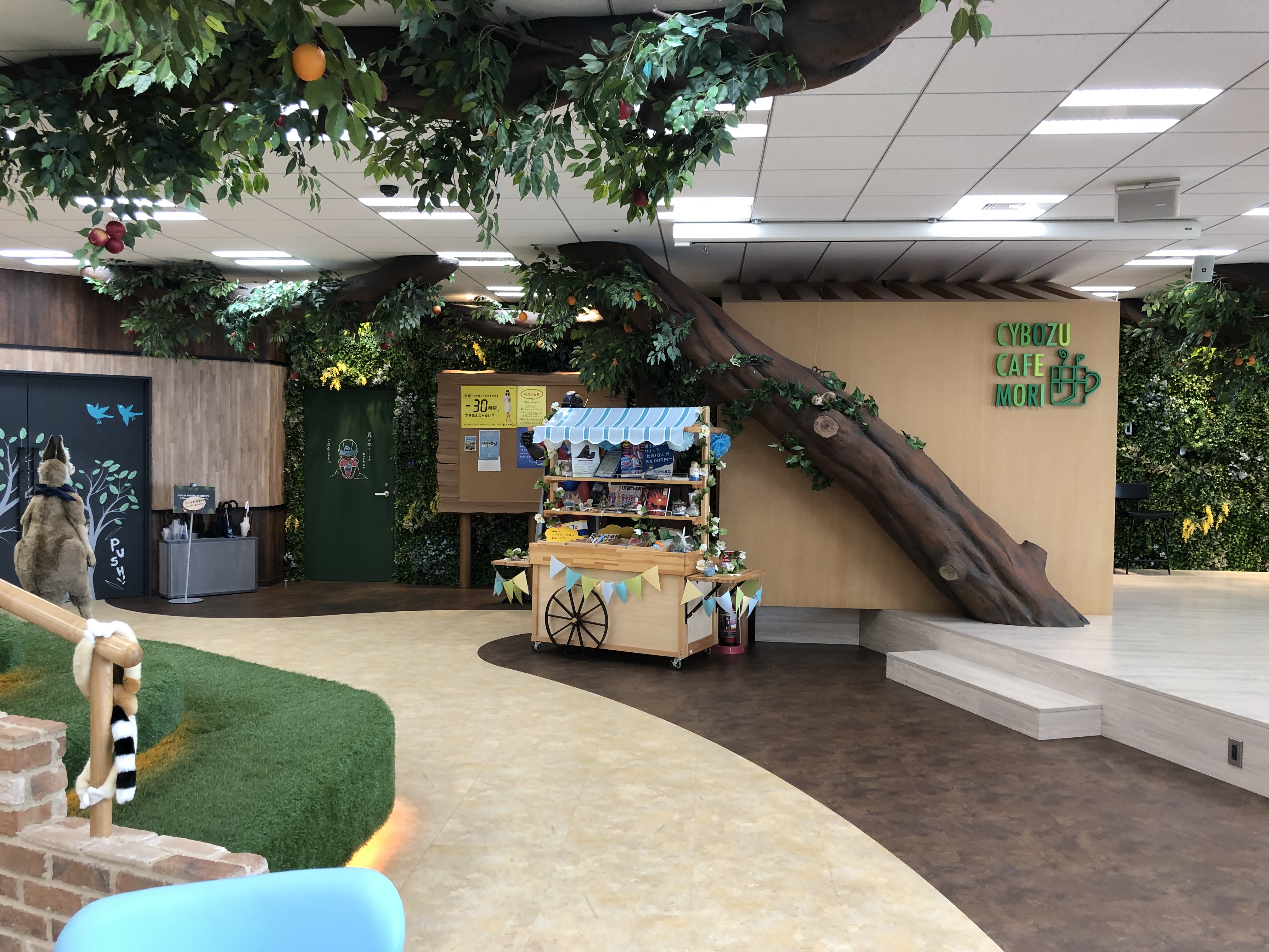 サイボウスのオフィス、喫茶コーナー、売店(ワゴン)、ぬいぐるみなどがあります。