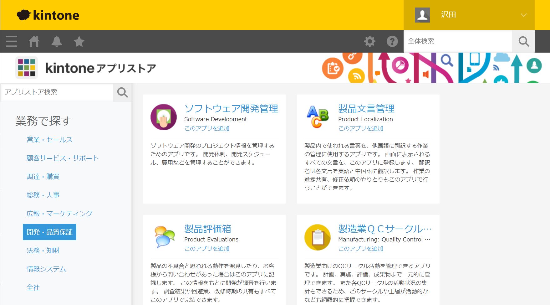 kintoneのアプリ開発の画面(業務ごとに数多くの例があります)