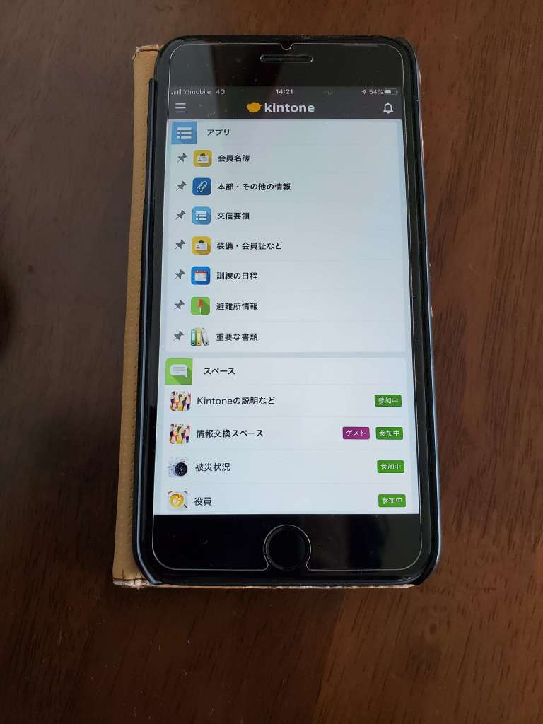 kintone はPCやスマホからアクセスできますが、外での使用を想定し、スマホからのアクセスしやすさも重要です。下に、スマホでのメニュー表示を示します。今回は以下のメニューより下から2番目の「被災状況」を選択します。